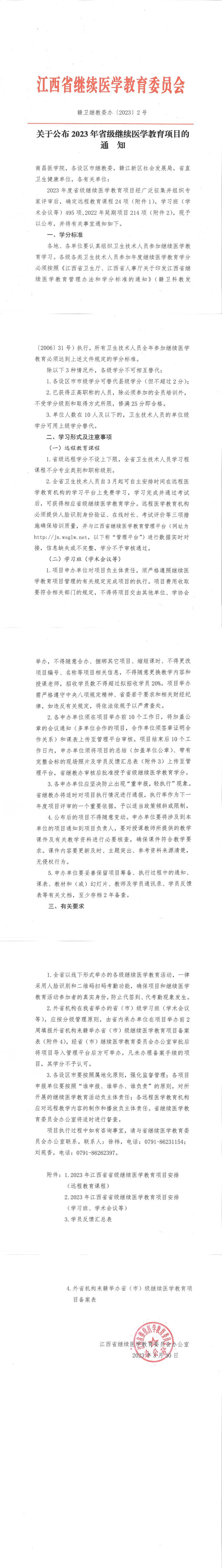 关于公布2023年省级继续医学教育项目的通知